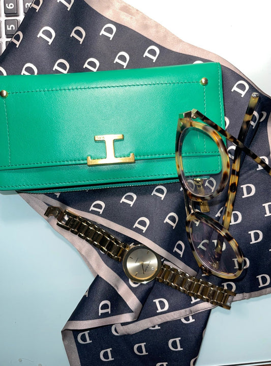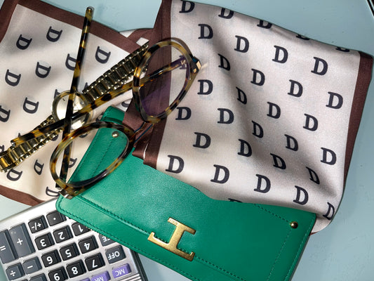Du Flambé Unisex Signature Black & Tan Silk Handle Scarf - 100% Pure Silk