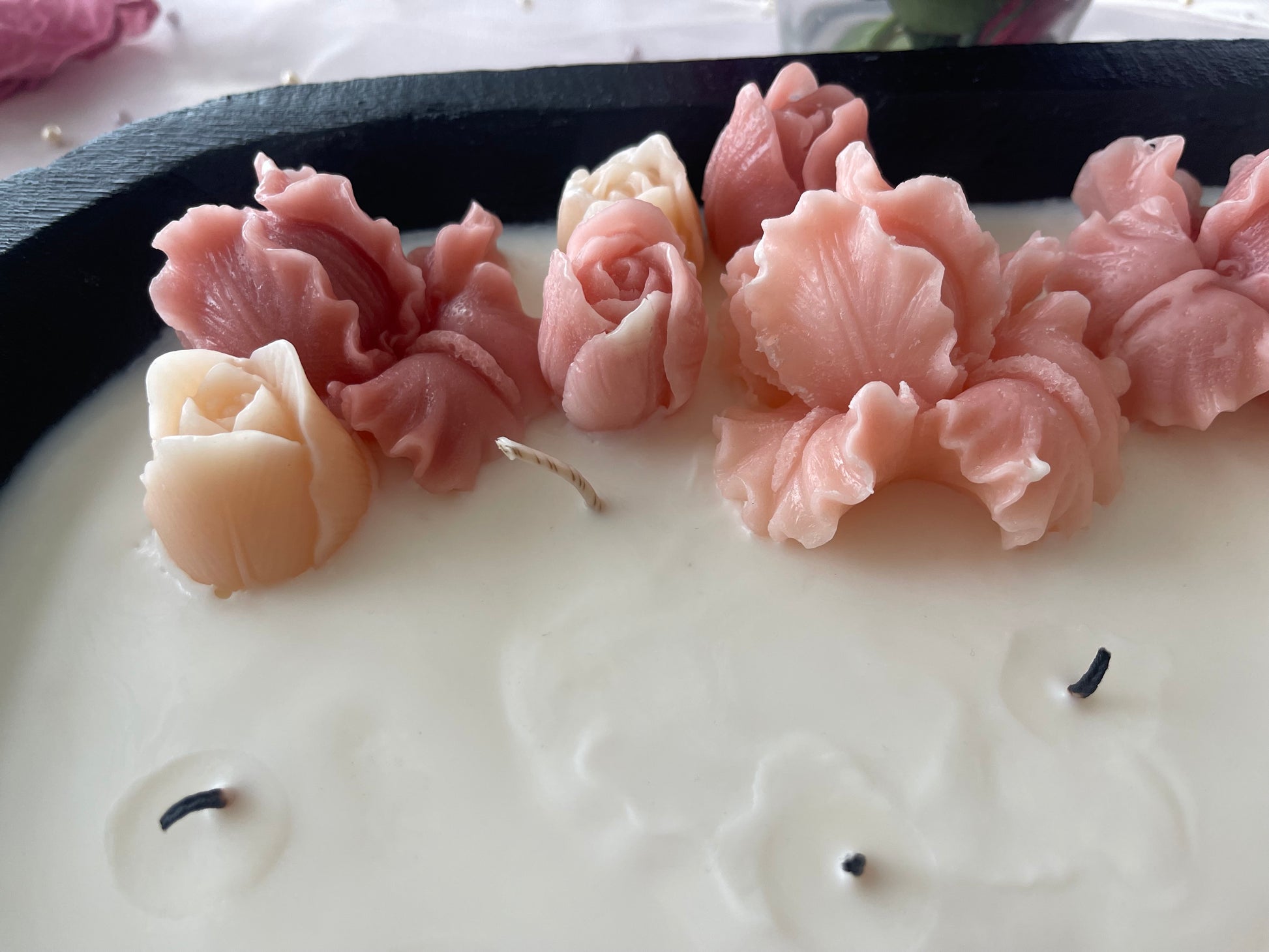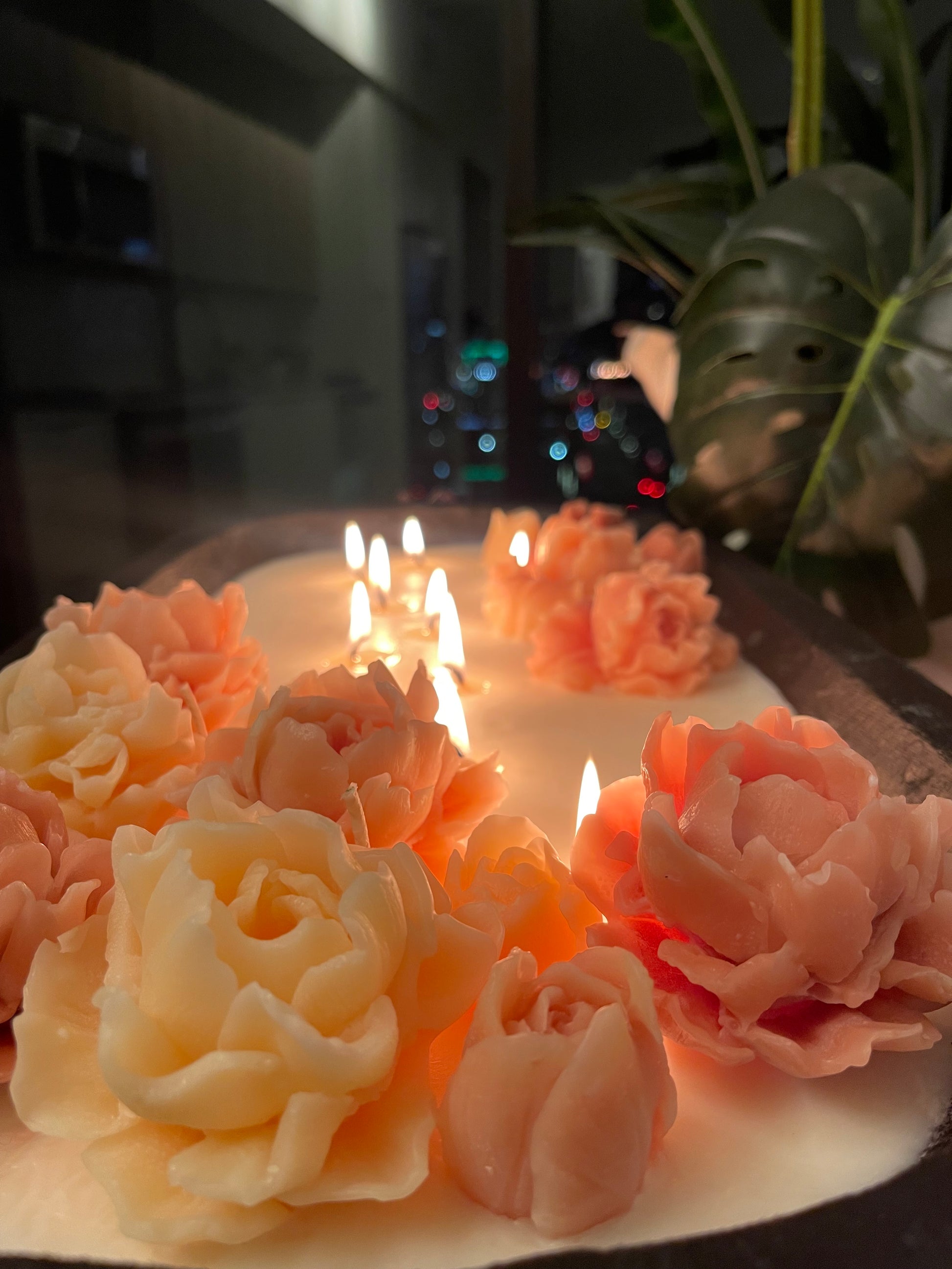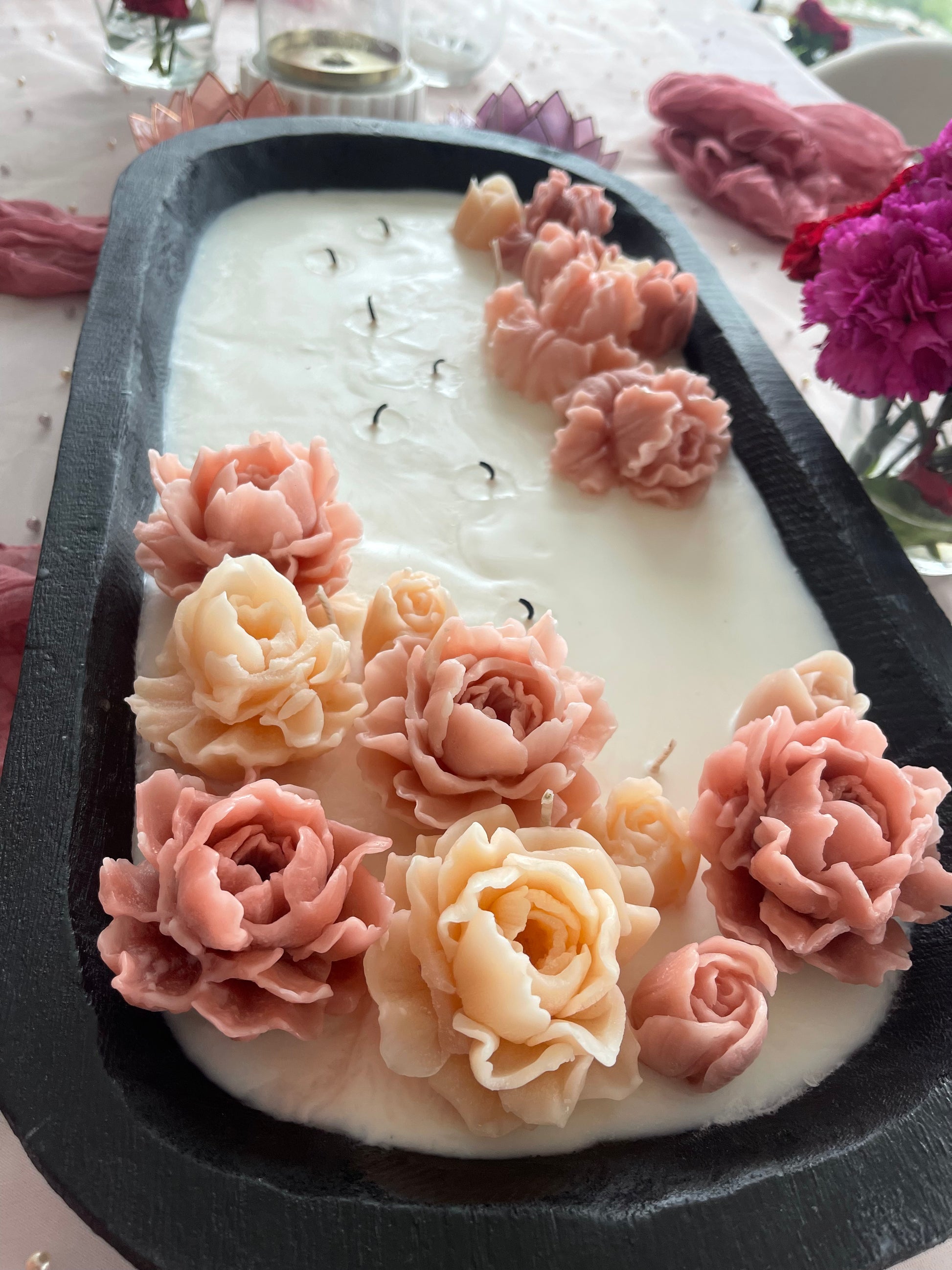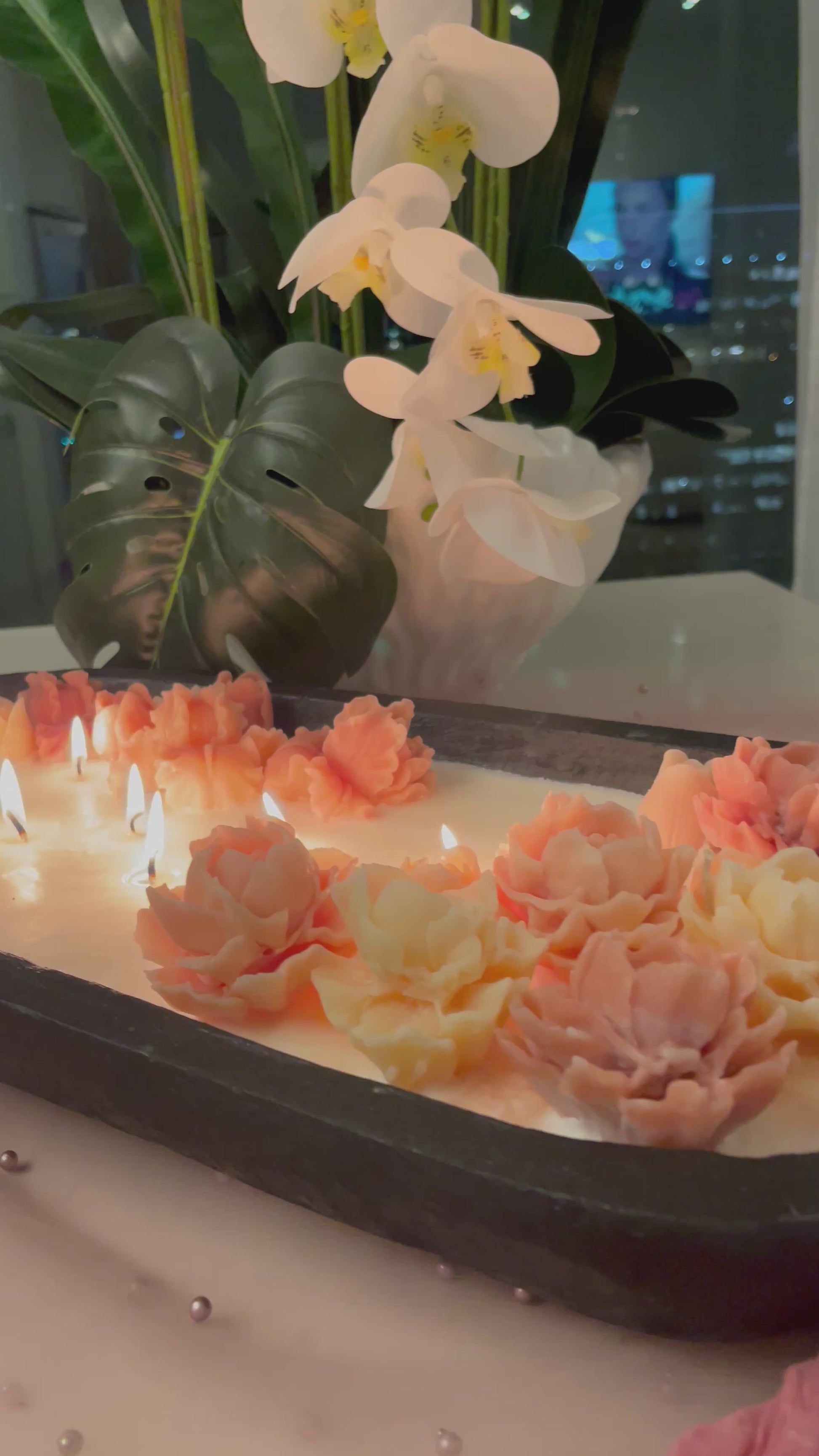 Crafted for upscale homes, weddings, luxury gifting, and modern interior statements, this candle blends function with sculptural artistry—featuring wax pearls, petal accents, and custom fragrance profiles.