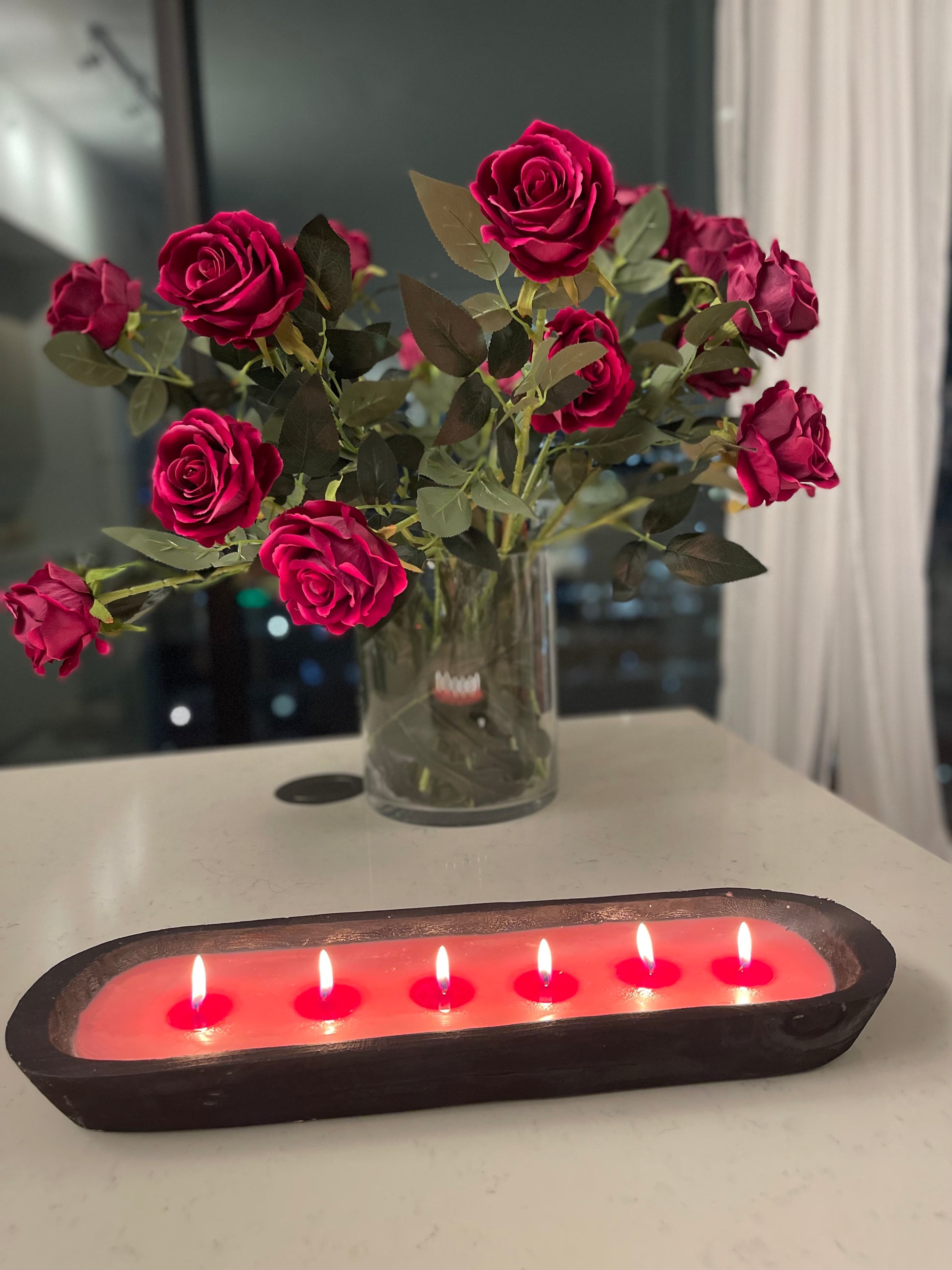 Hand-finished in a modern trough form, The Sultrist is weighty in the hands, smooth in finish, and undeniably commanding once placed. Its five-wick design produces a long, luxurious burn, delivering warm light that expands across surfaces, glassware, skin, and evening air.