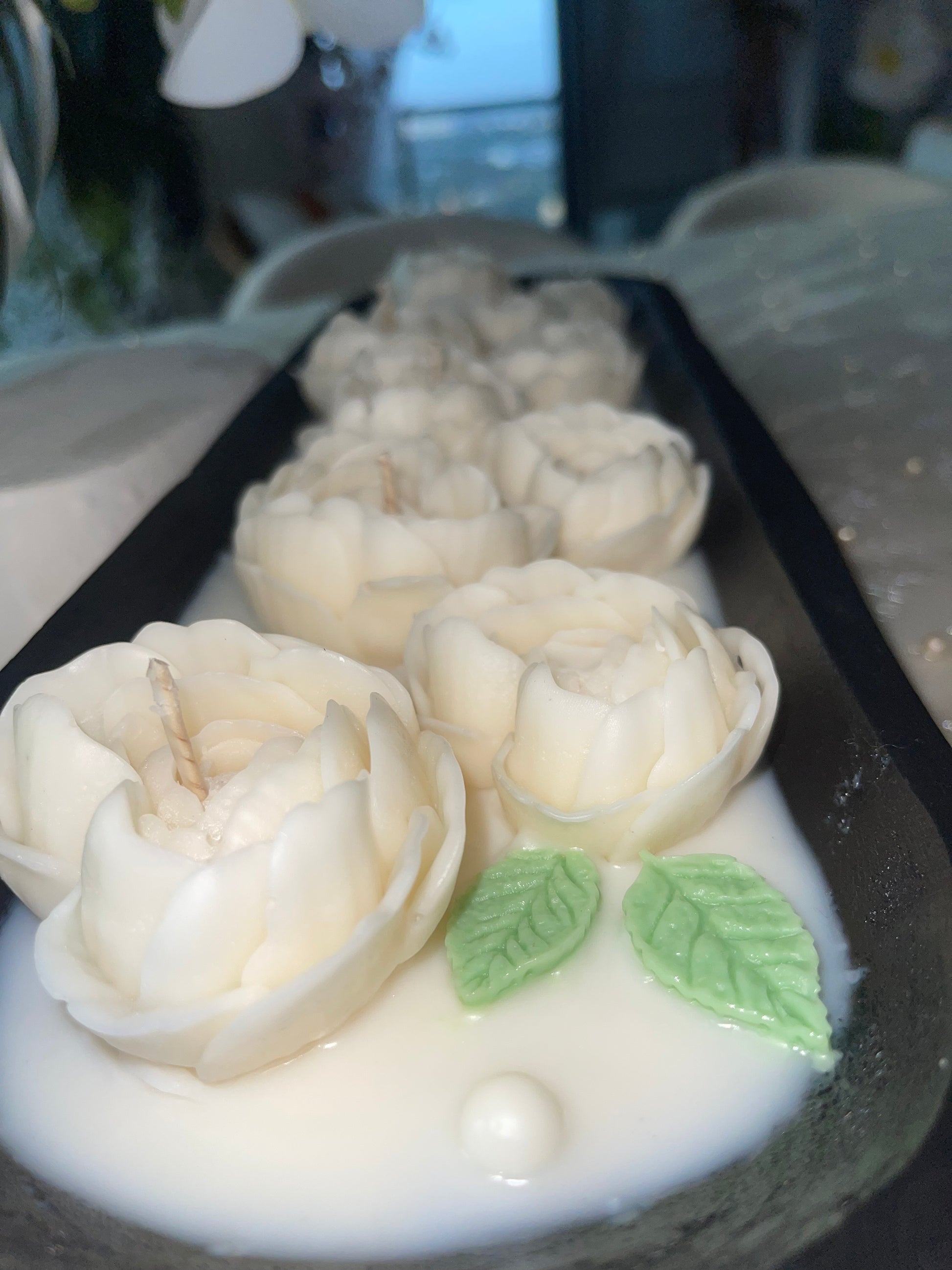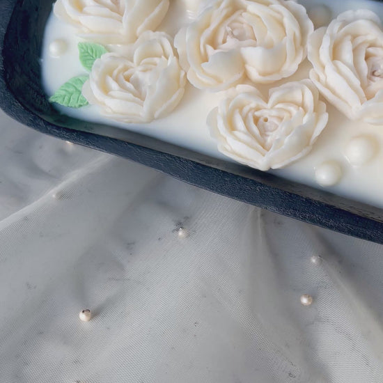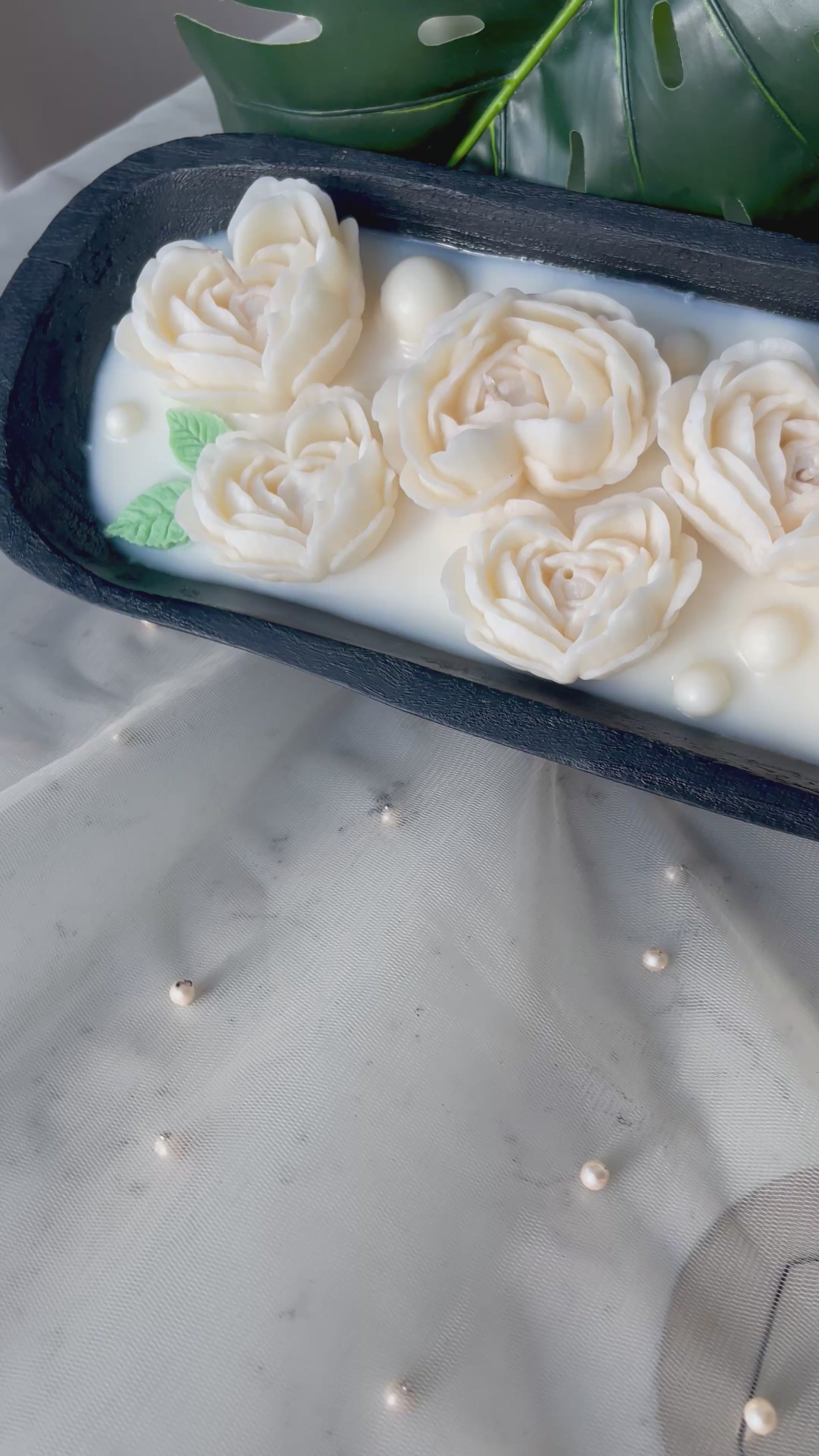 A handcrafted 20-inch luxury dough bowl candle designed to be the statement piece of any room. Sculpted petals, handmade wax pearls, and artisanal construction turn this candle from décor into collectible art.